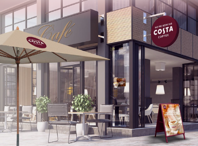 Wyeksponuj ofertę legendarnej kawy Costa Coffee w Twoim lokalu za pomocą wyraźnego i widocznego zewnętrznego oznakowania oraz angażującej komunikacji.